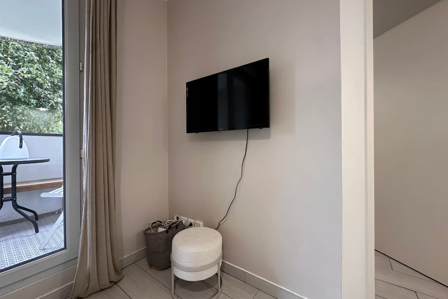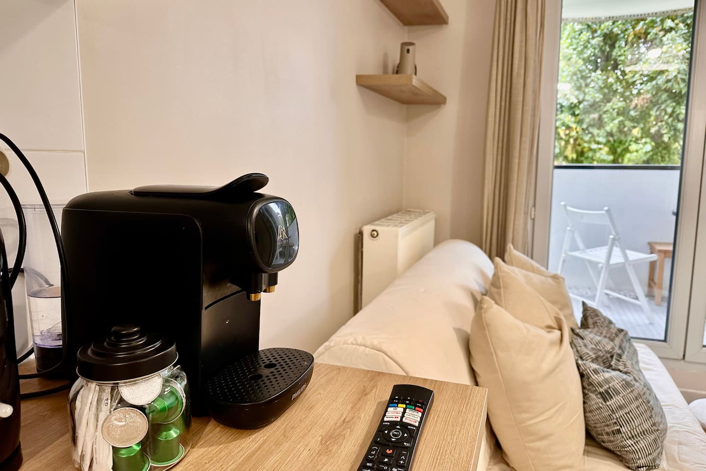 The sofa is an additional bed measuring 135x200cm. You also have a single inflatable mattress available. The travel cot for babies is available on request. The accommodation measures 35m2.