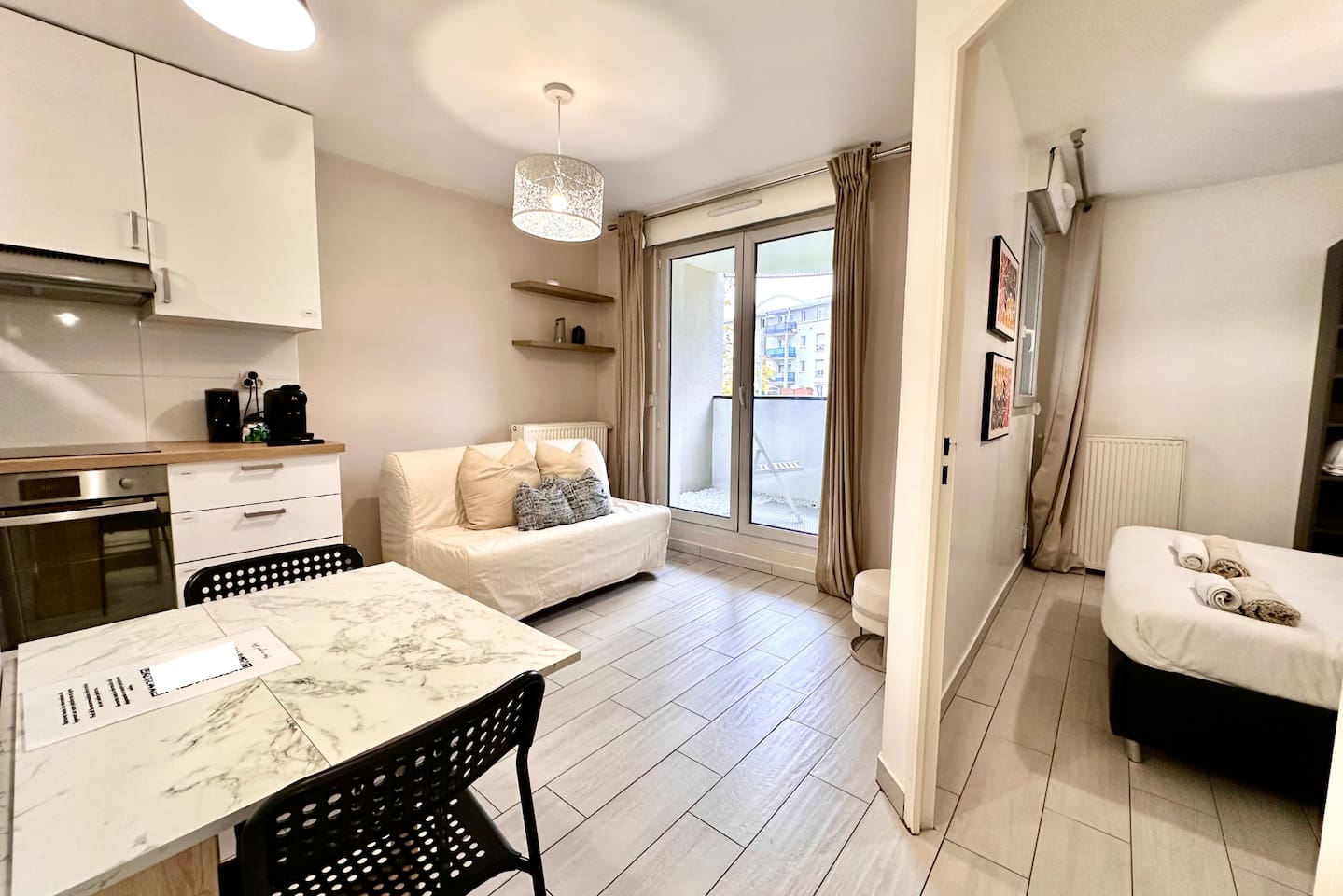 Cosy apartment 8 minutes' walk from RER A Torcy. Disneyland - 10min Paris gates - 15min Enjoy an entire accommodation: living room, equipped kitchen, bedroom, bathroom and balcony. Located in a quiet and secure residence, just steps from the new police station, Ministry of the Interior. Lively neighborhood with all amenities. Professional cleaning and disinfection ensured after each stay.