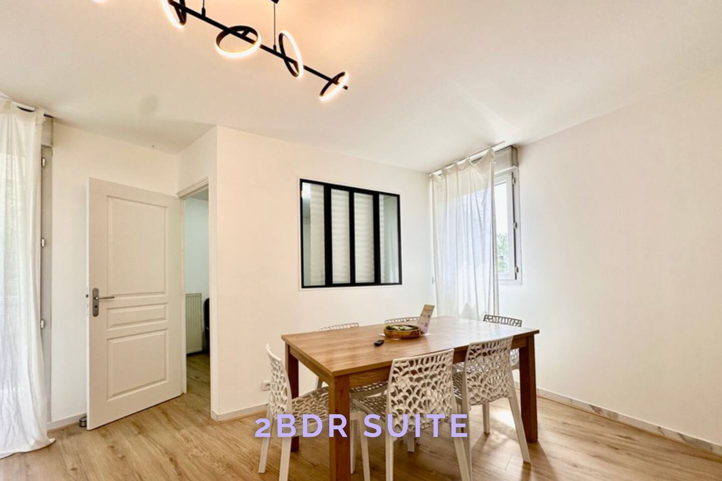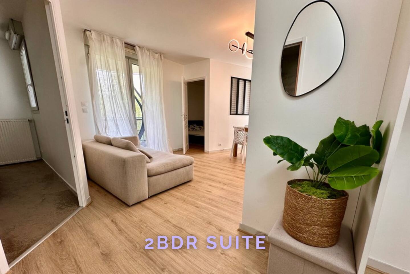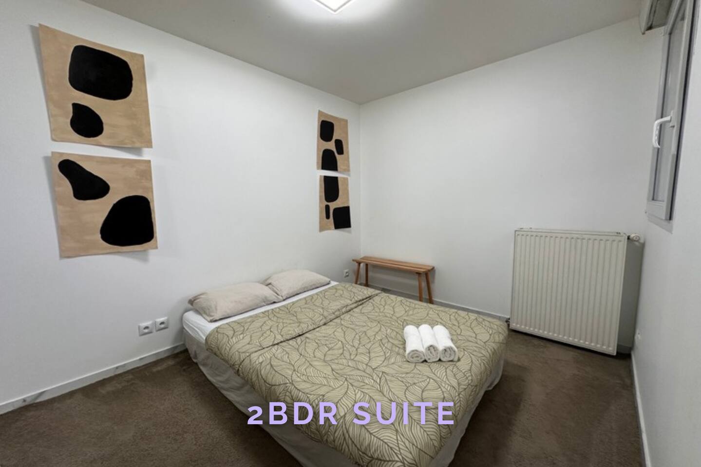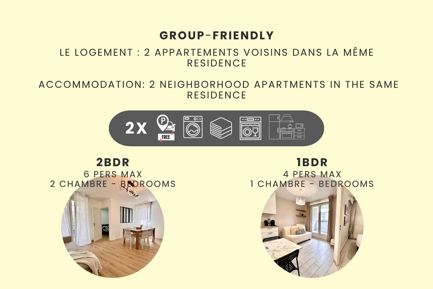 IDÉAL GROUPES | 10 pers Nous vous proposons 2 appartements dans la même résidence. Ce sont des appartements voisins : l’un au rez-de-chaussée et l’autre au 1er étage. Suite 1 : 6 personnes max | 39 m2 | 2 chambres | 1 canapé-lit | 1er étage Suite 2 : 4 personnes max | 25 m2 | 1 chambre | 1 canapé-lit | Rez-de-chaussée À 8 min à pied de la gare RER Paris - 15 min Disney - 10 min
